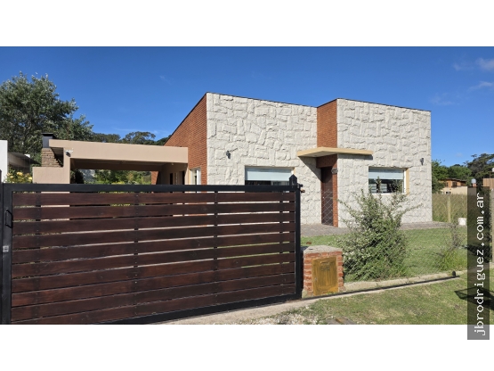La casa se distribuye en una sola planta, con 95 m2 cubiertos construidos y 30  m2 semicubiertos de guardacoche con parrilla. Cuenta con un estar- comedor, amplia cocina integrada con barra desayunadora totalmente amoblada, lavadero separado, dos amplios dormitorios, uno en suite con baño completo, más otro baño completo de uso común.